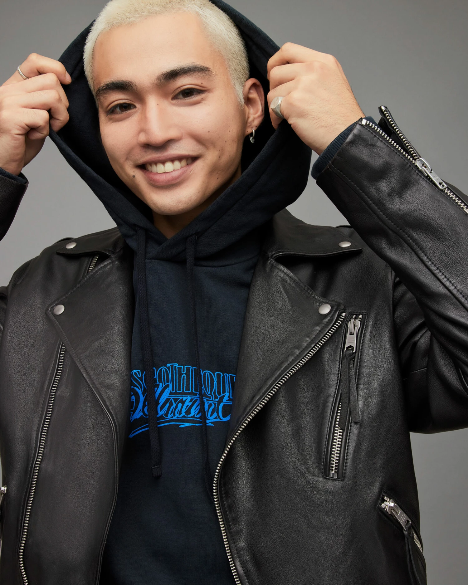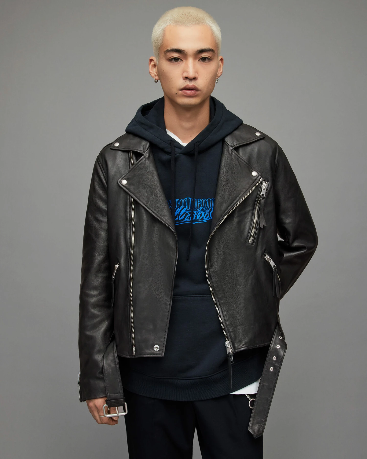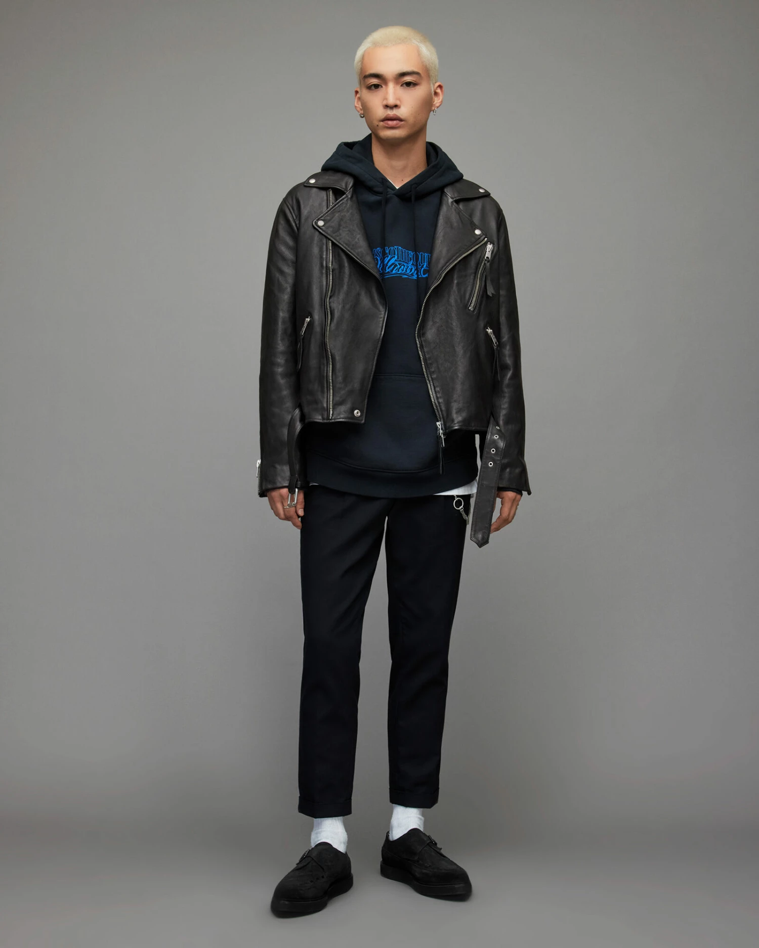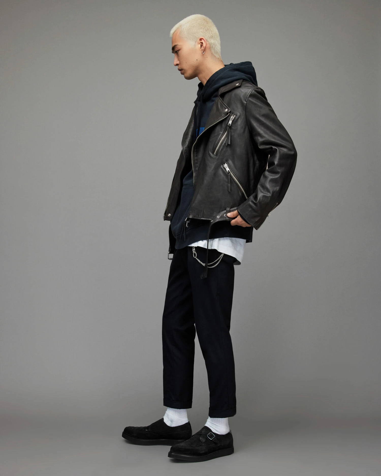 Cropped and boxy. The Allen Biker has a shape we love. Crafted from leather, with a wider collar than usual. Completed with our signature metal hardware – style it out.