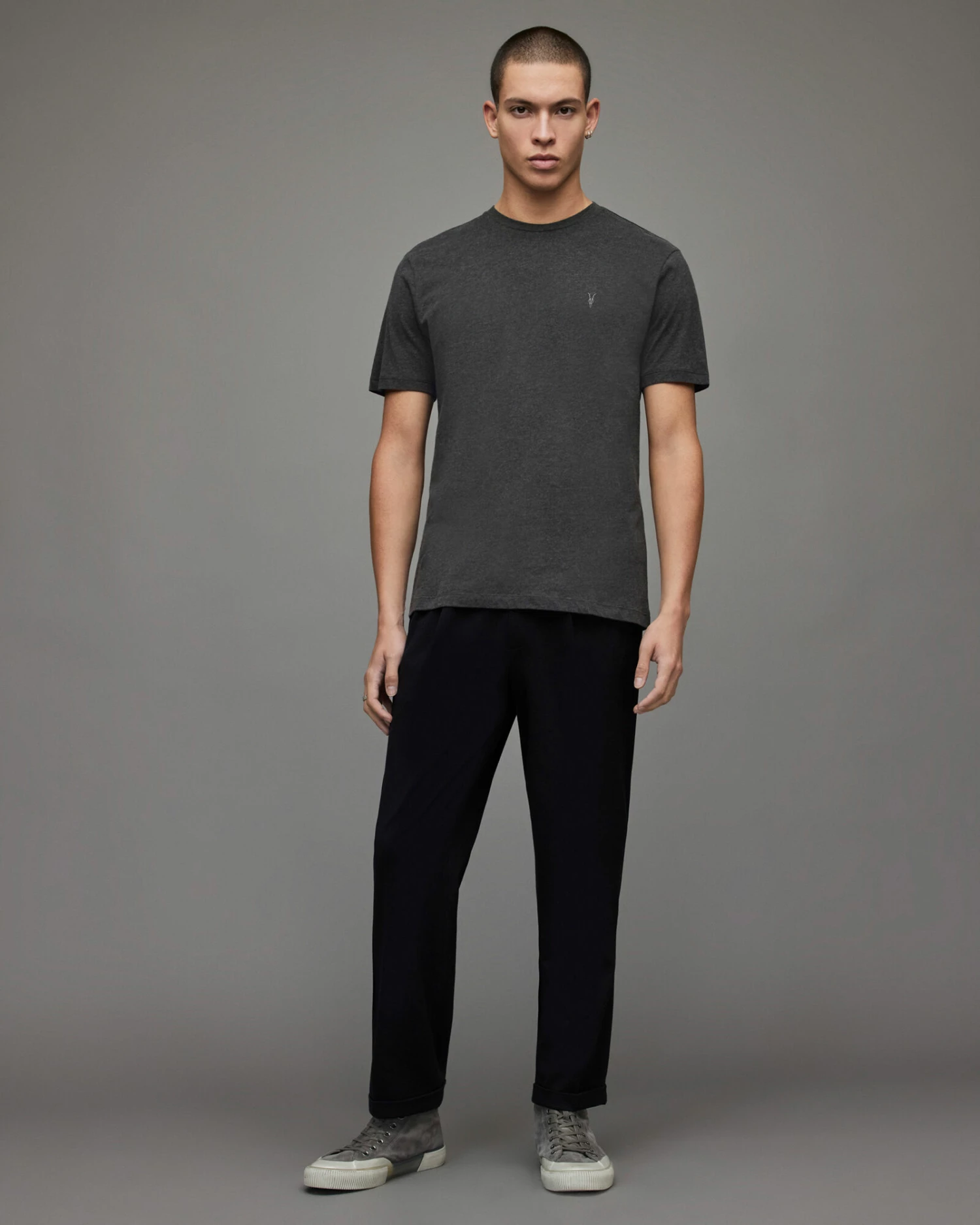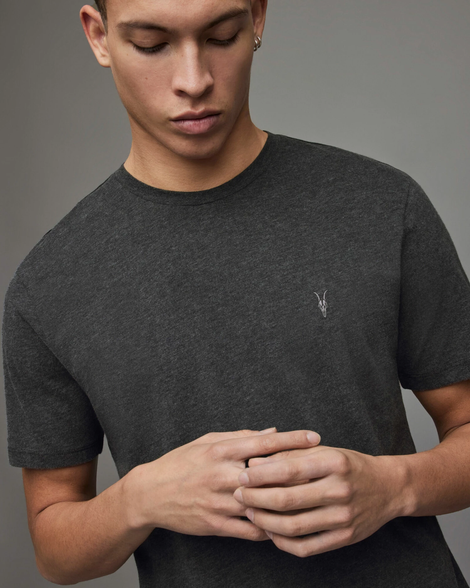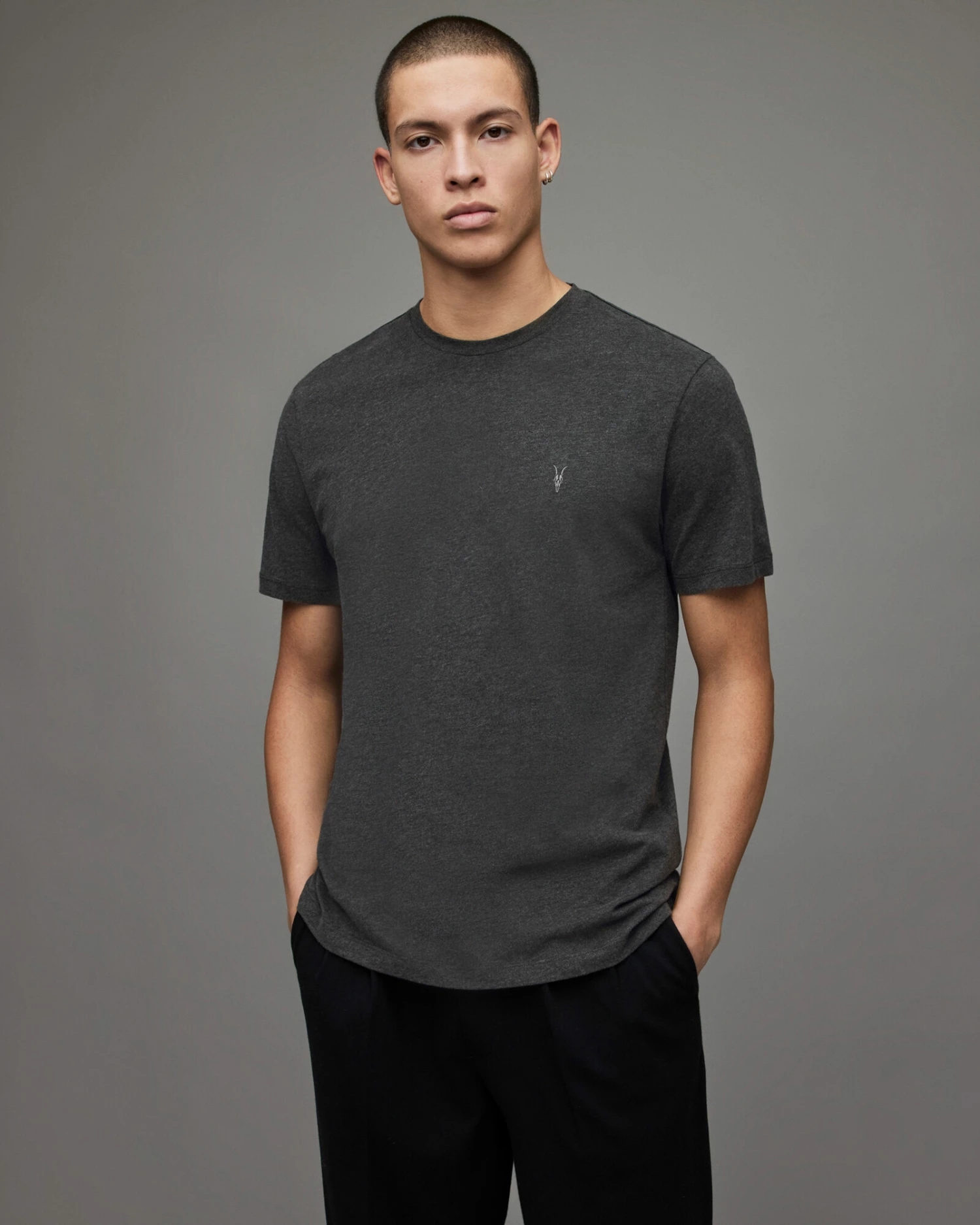 Basics at their best. The Brace Crew T-Shirt. Carbon brushed cotton. Supersoft touch. Crew neck. Short Sleeve. Ramskull embroidery on the chest.