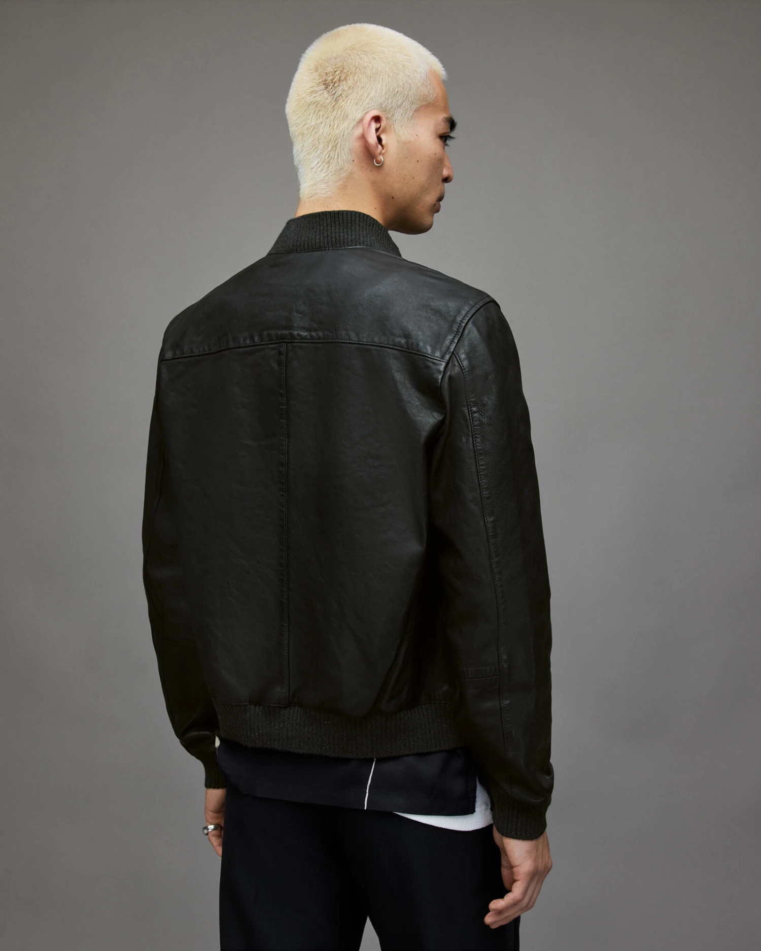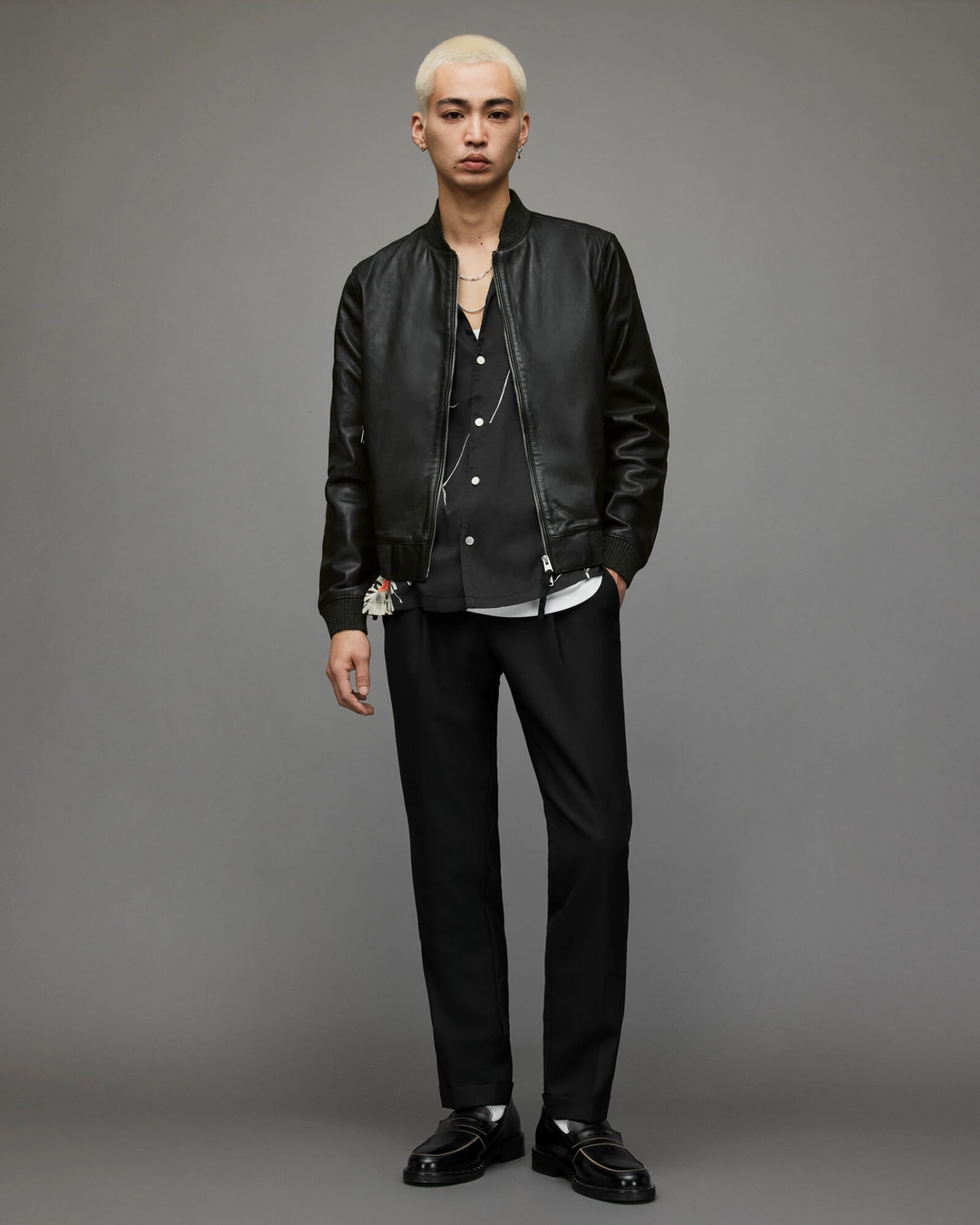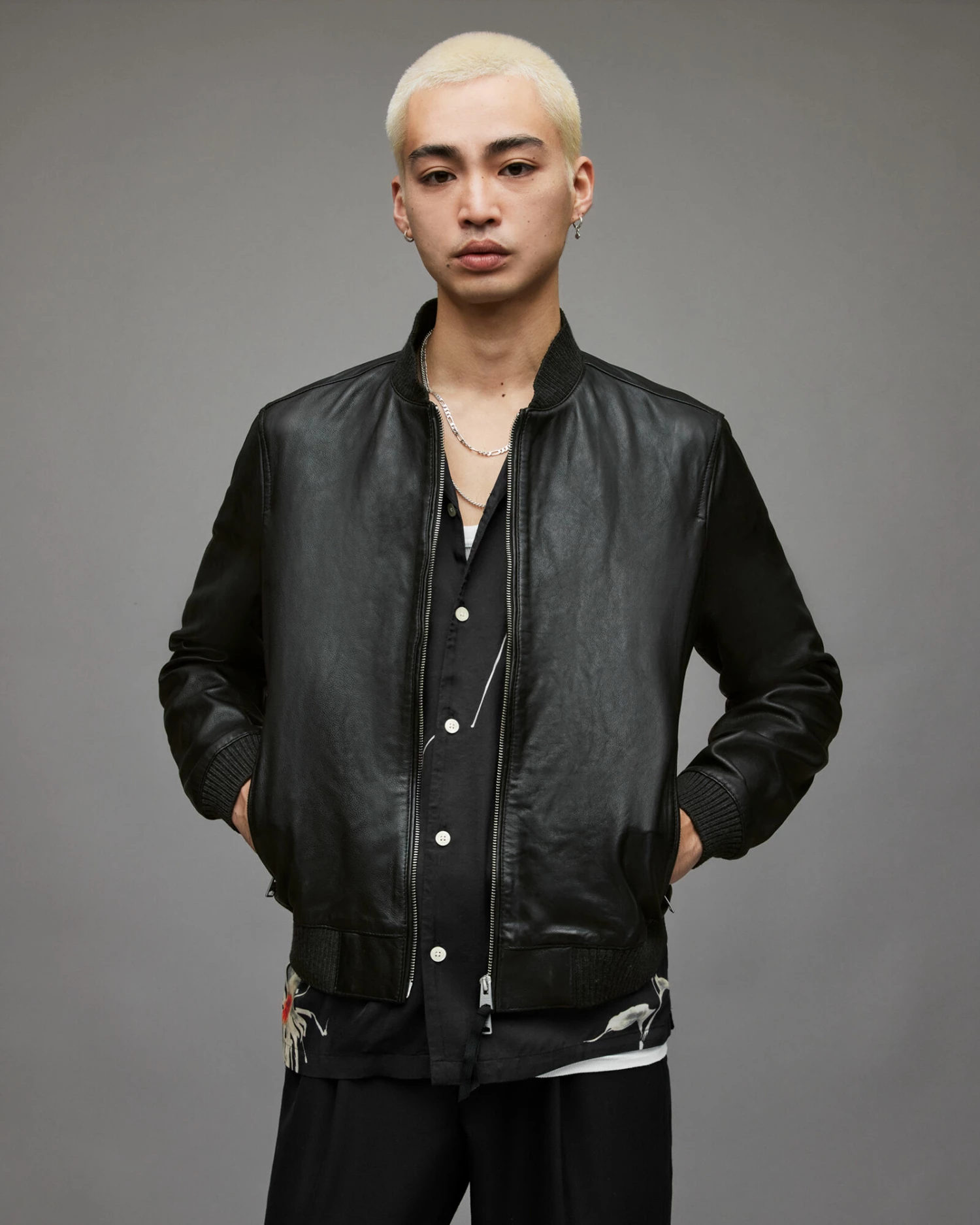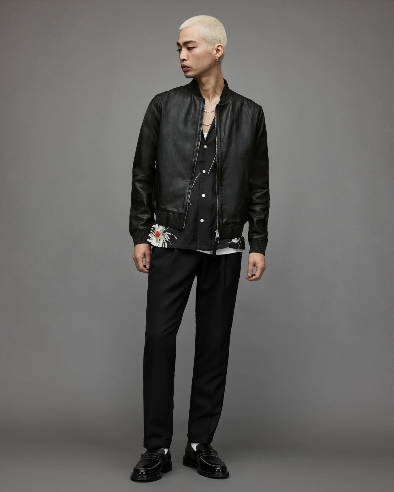 Find style in simplicity. The Cahill Bomber Jacket is crafted from leather. The minimal shape is now cropped. Completed with ribbed trims and multiple pockets.