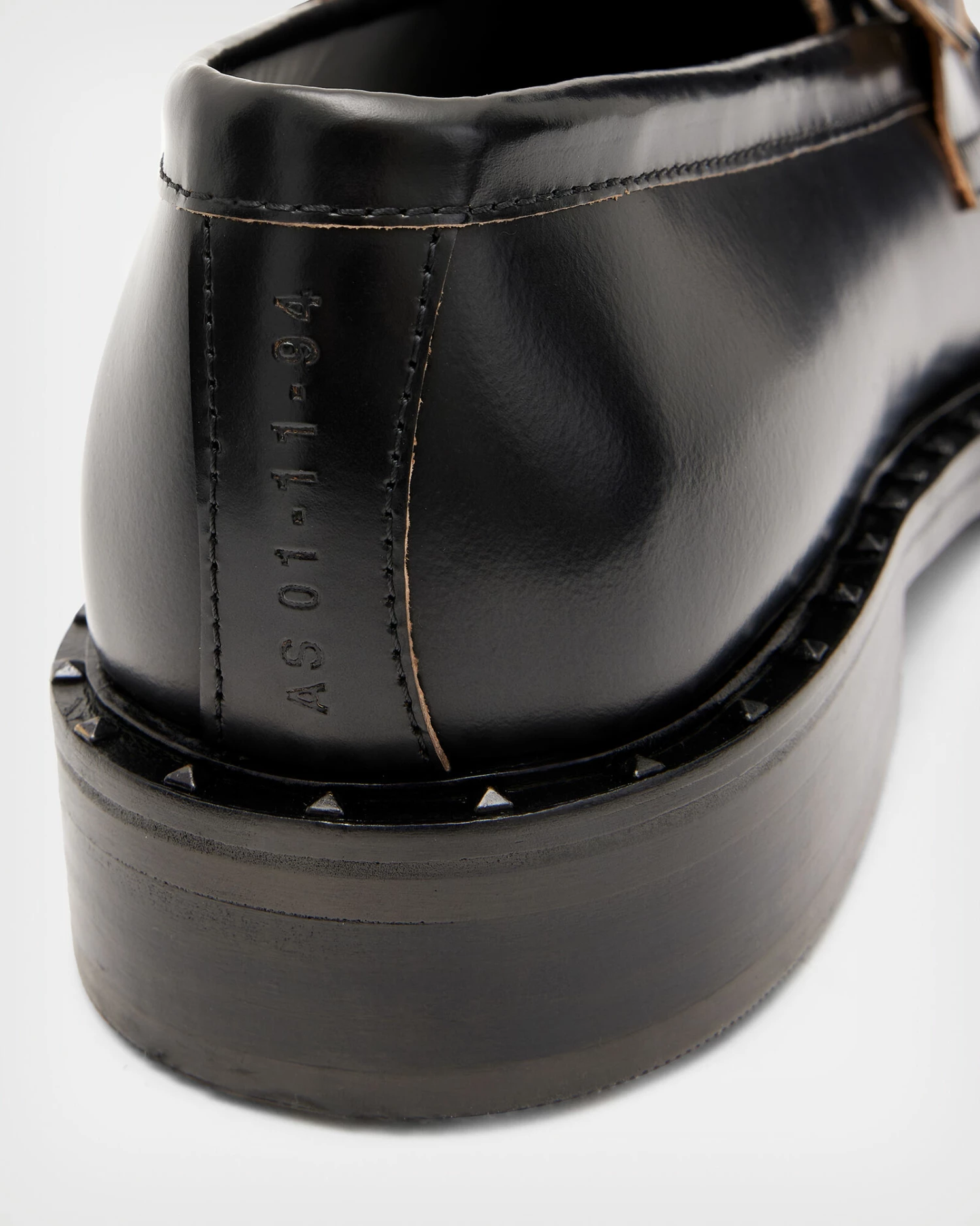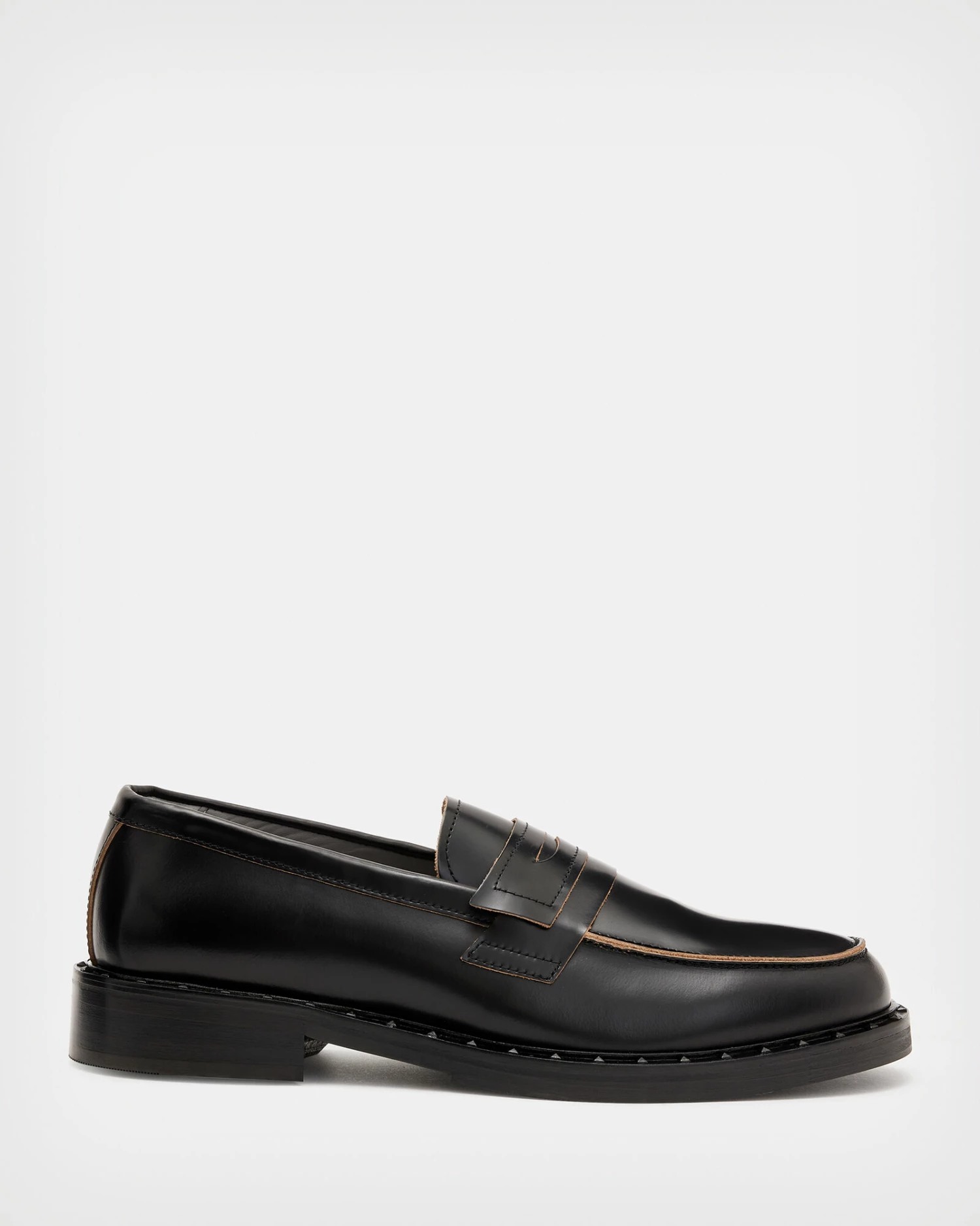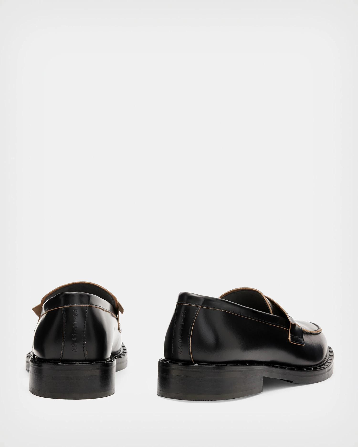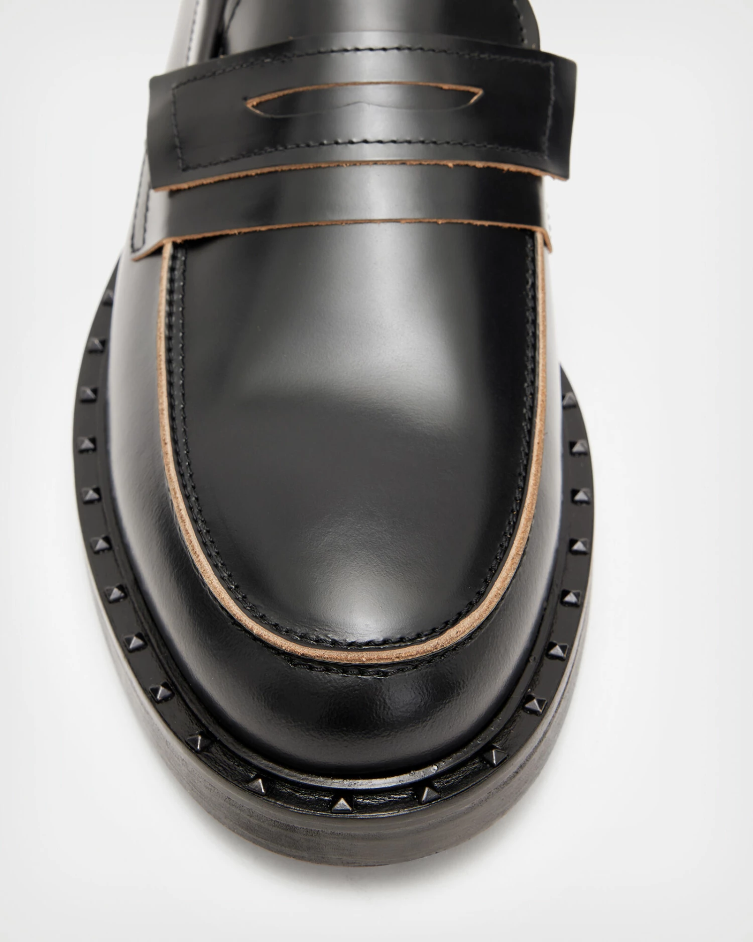This is how we do loafers. Crafted from leather with raw edge seams and metal studs. The classic silhouette has been reinvented – they’re called the Dalias.