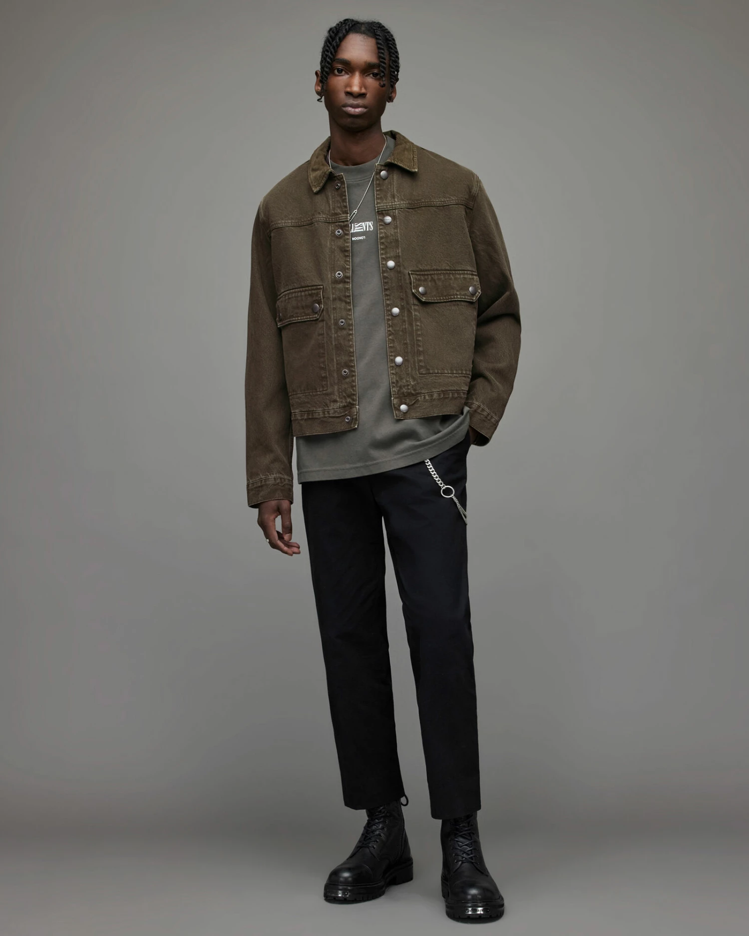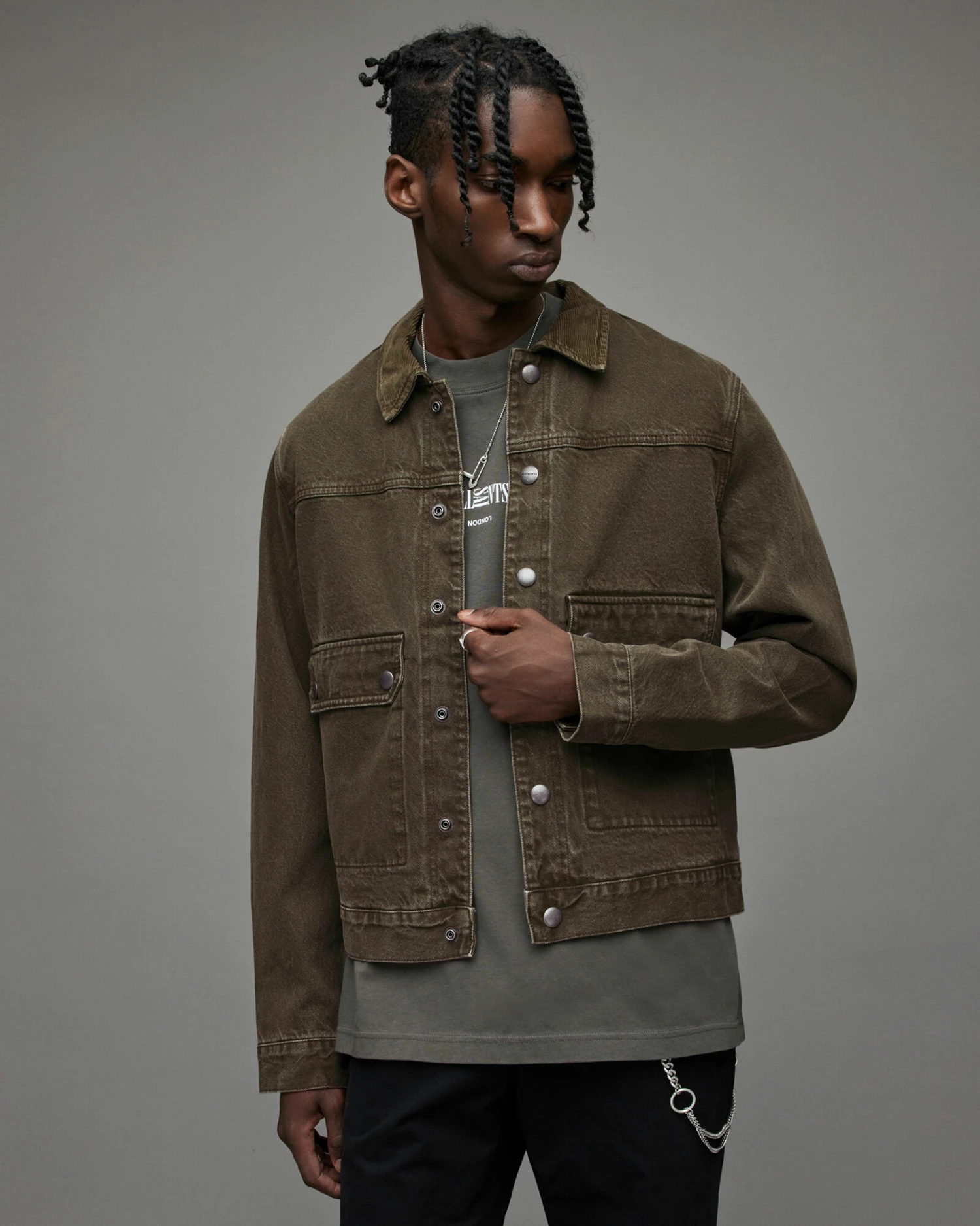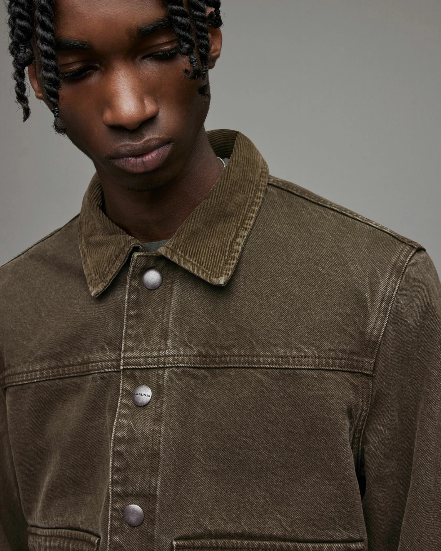 - Tonal corduroy collar