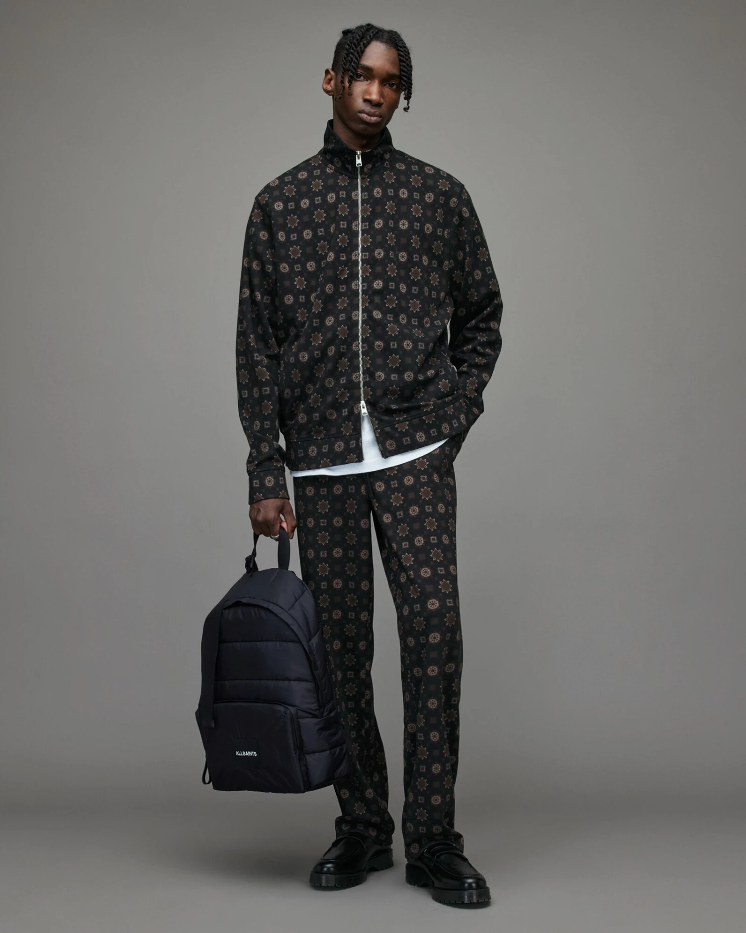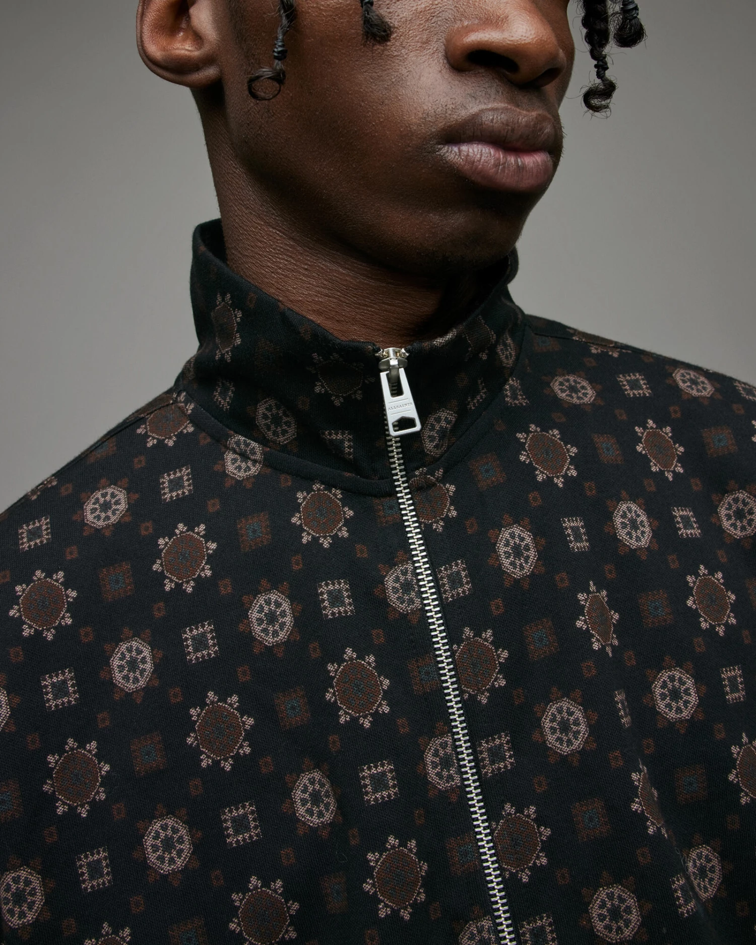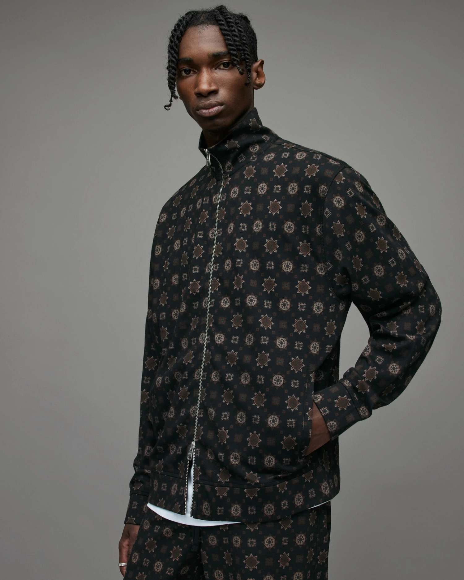 We’re throwing it back with the Flynn Zip Through Jacket. The all-over print has a retro feel. Structured with a funnel neck and long sleeves in a relaxed fit. There’s even sweatpants to match.