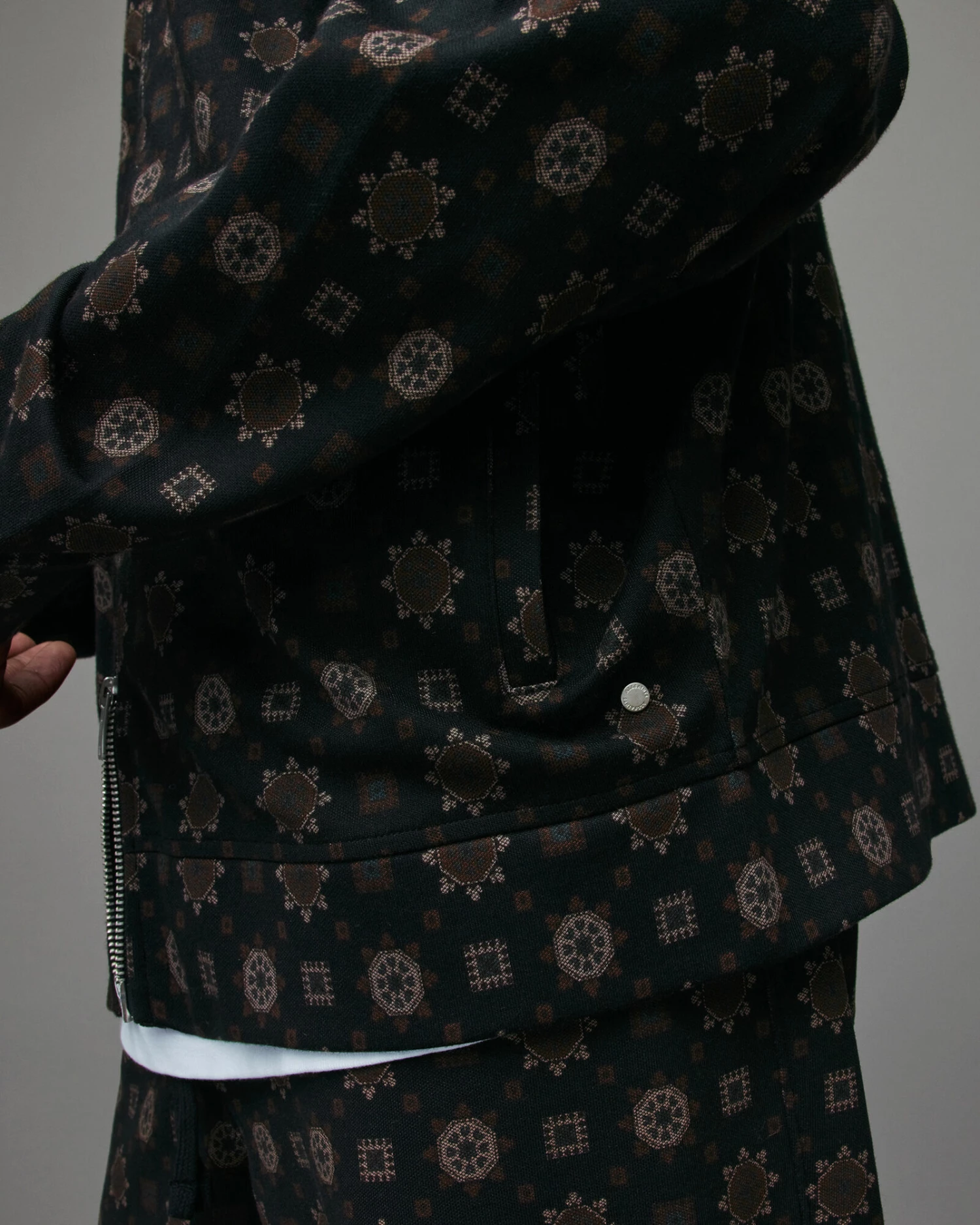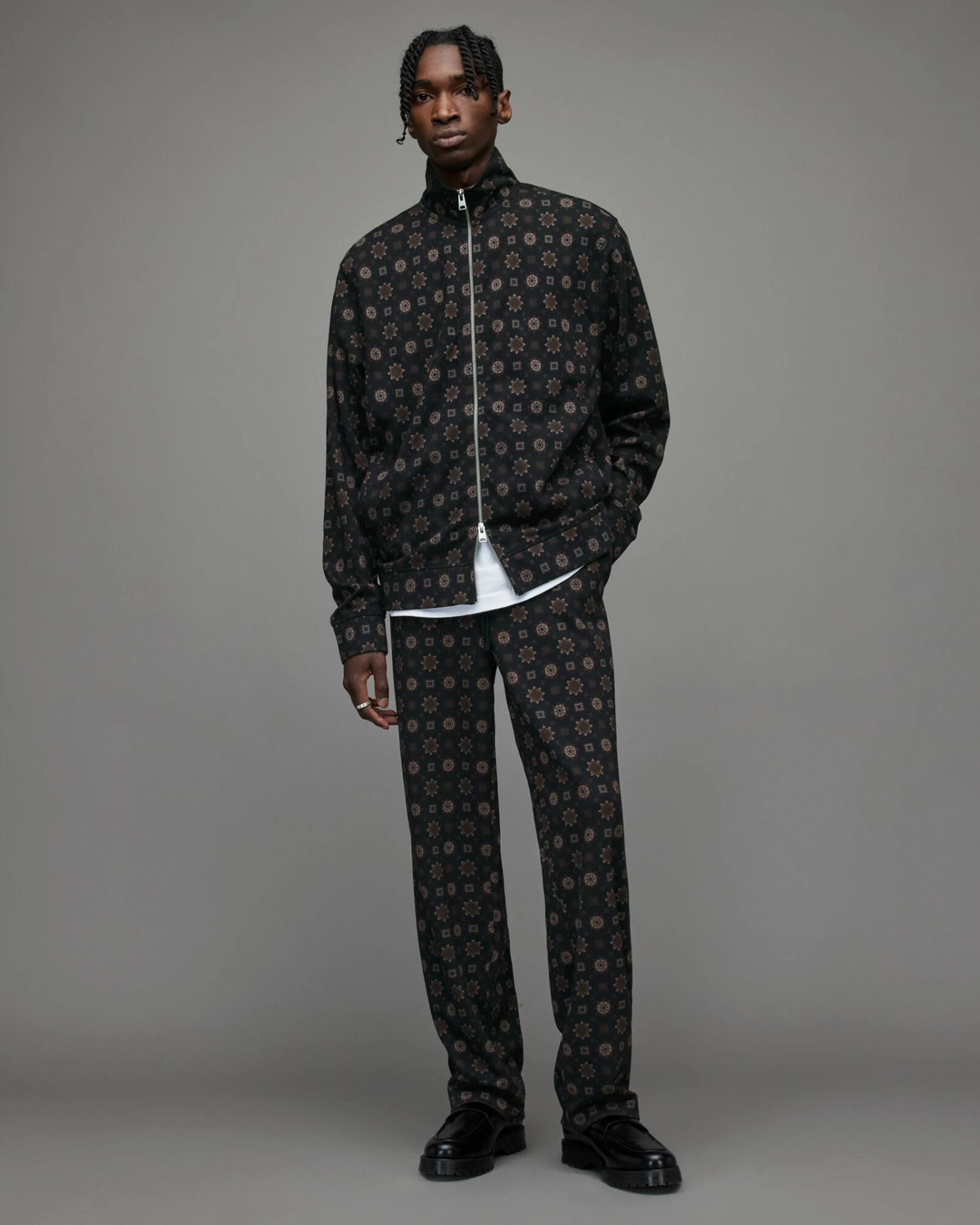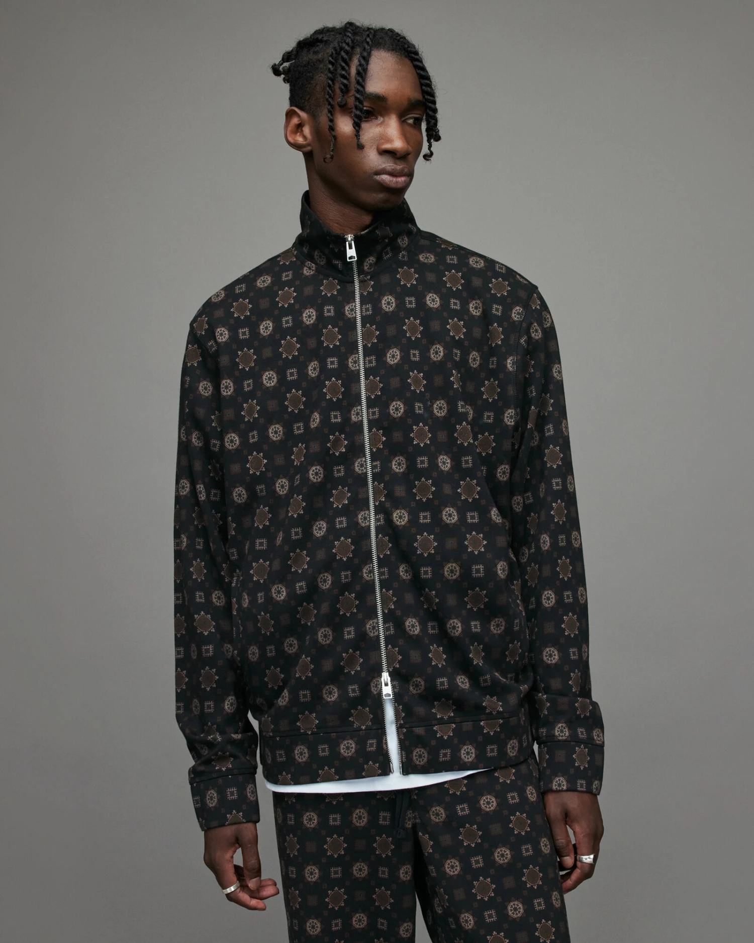 We’re throwing it back with the Flynn Zip Through Jacket. The all-over print has a retro feel. Structured with a funnel neck and long sleeves in a relaxed fit. There’s even sweatpants to match.