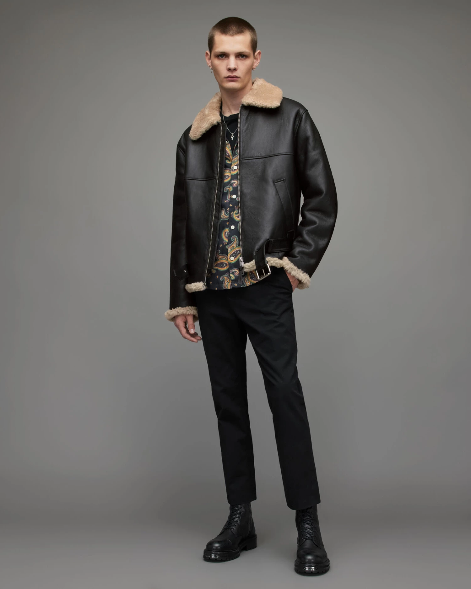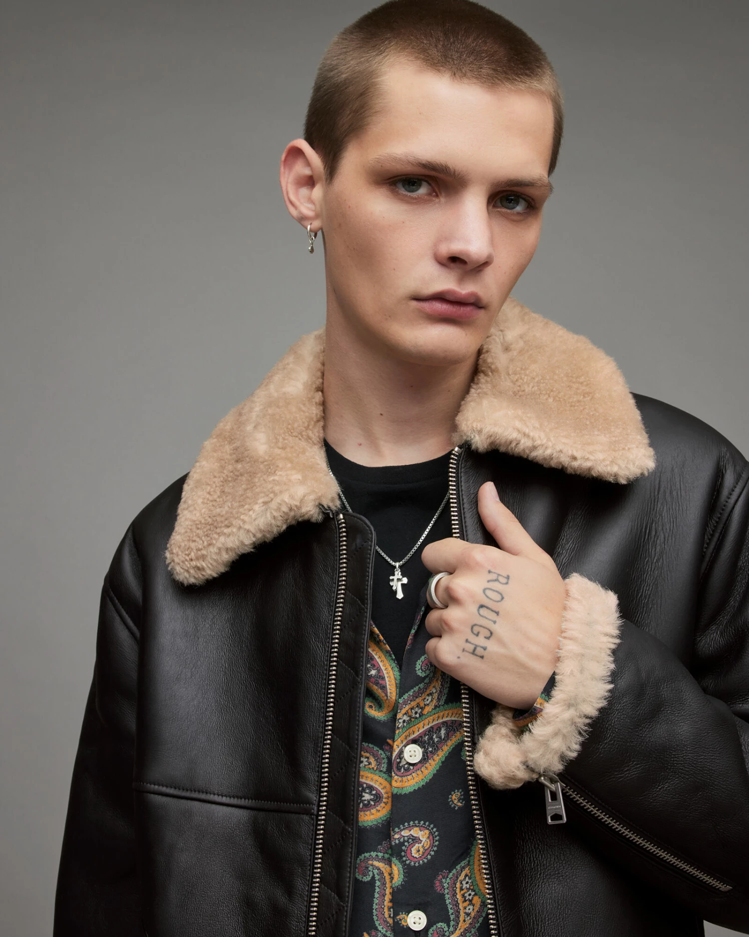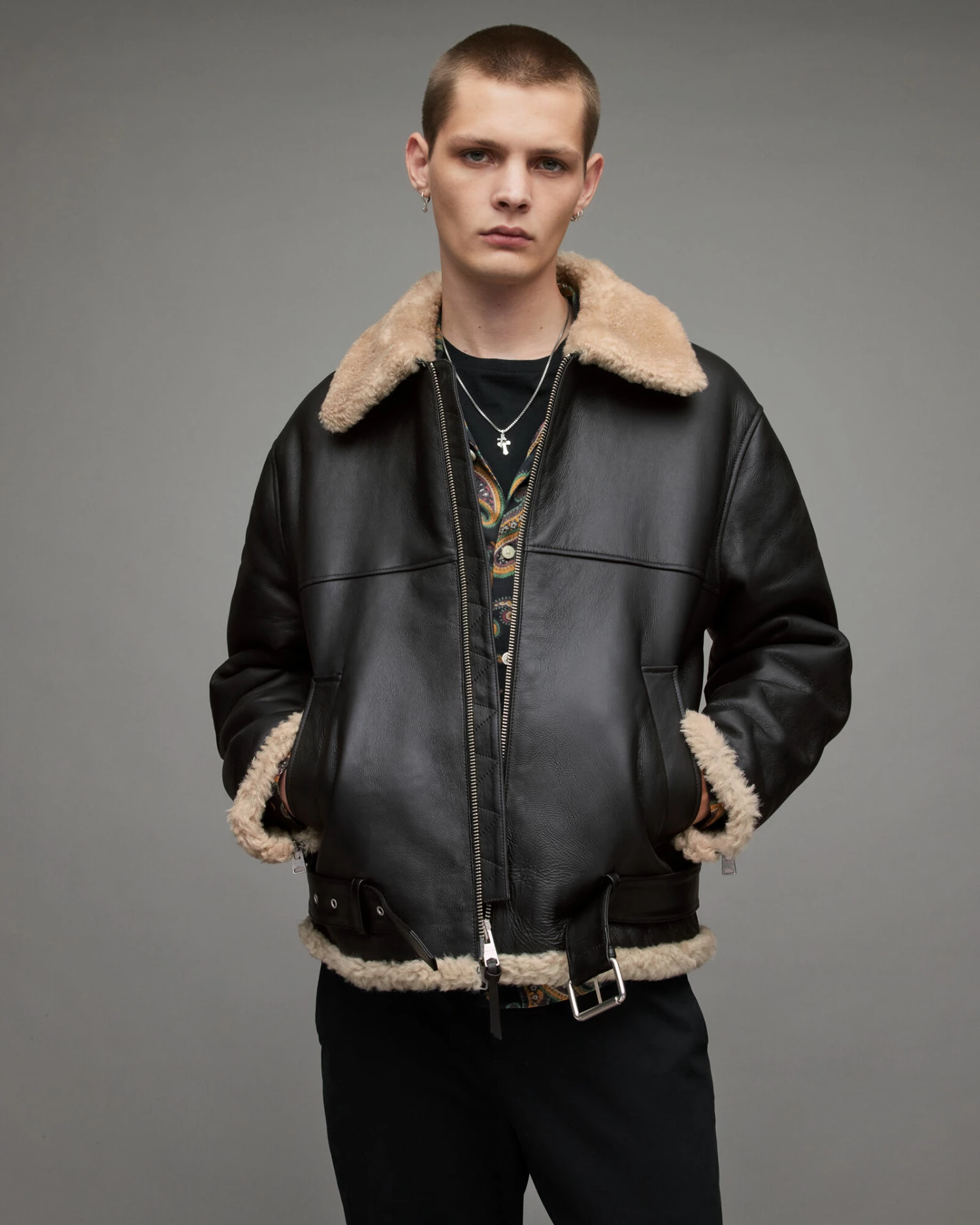 Winter is coming and so is the Hamel Jacket. The simple, relaxed silhouette zips up featuring multiple pockets and a belt. It’s a classic shearling style with exposed natural wool trims.
