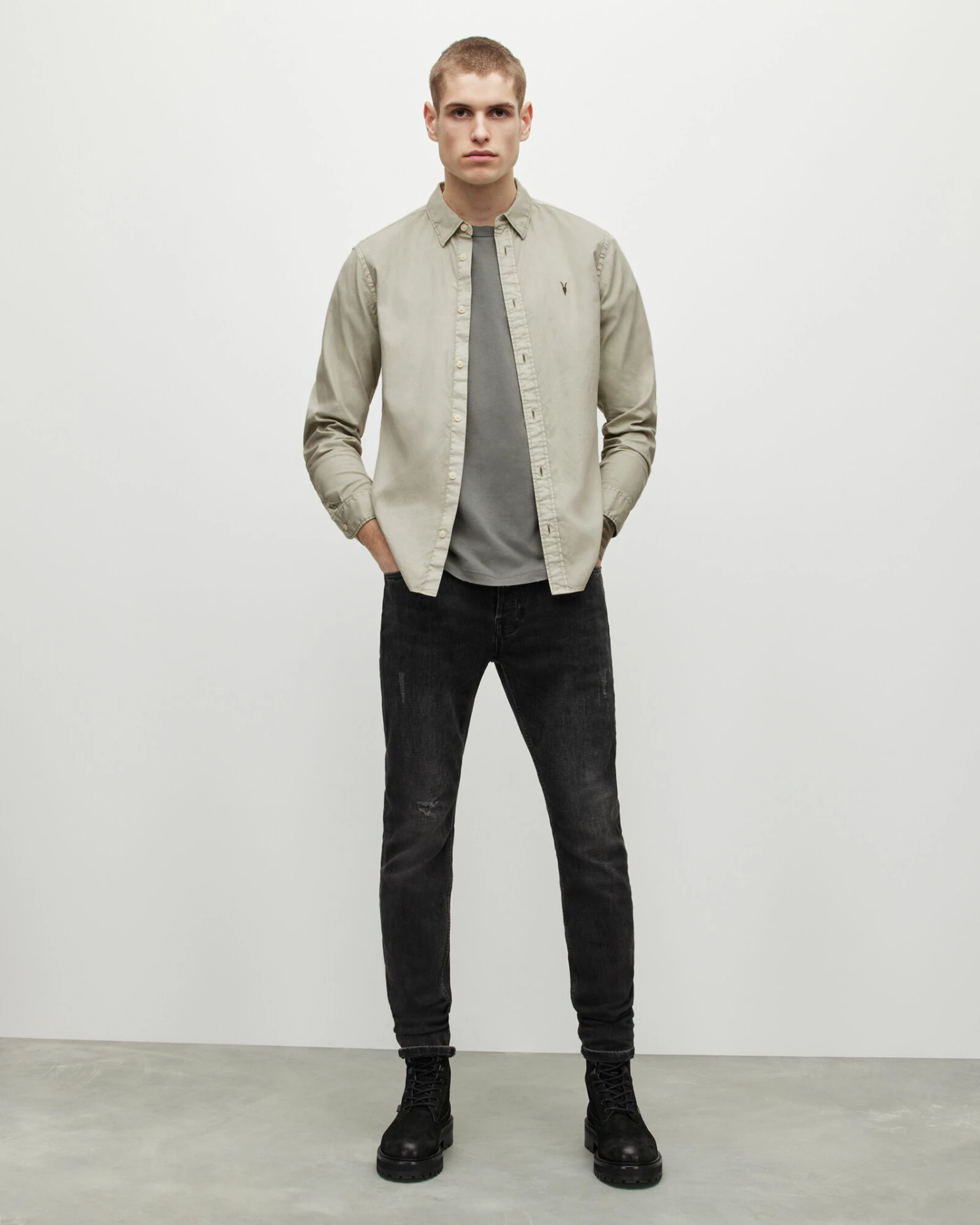 The Hawthorne Shirt – it doesn’t get more classic. Crafted from a stretch cotton blend fabric, in a slim fit. Our signature Ramskull sits embroidered on the chest.