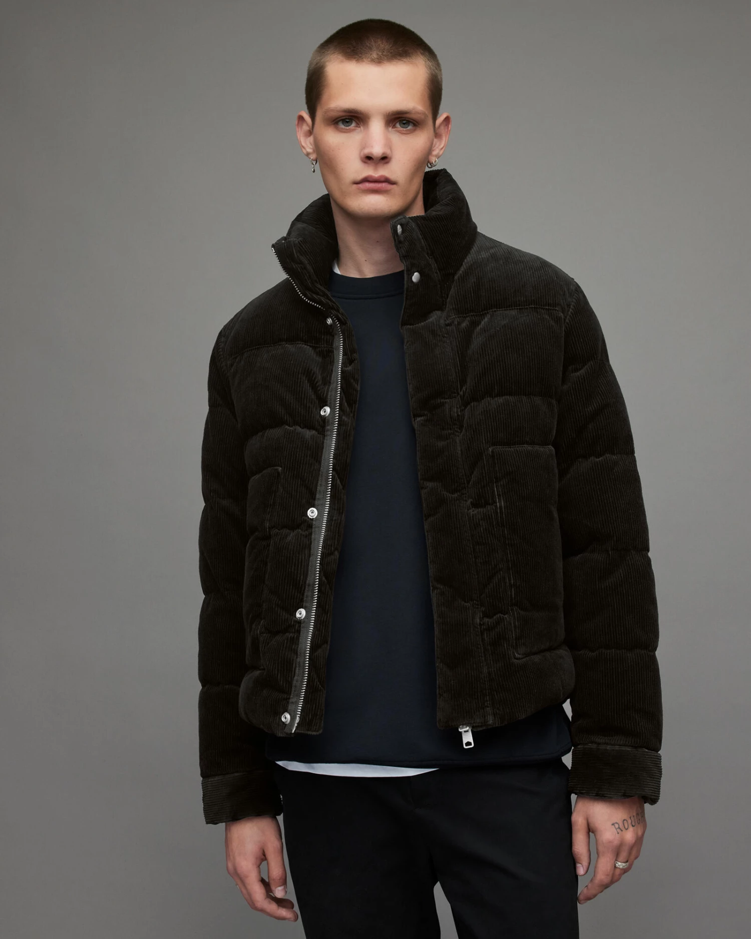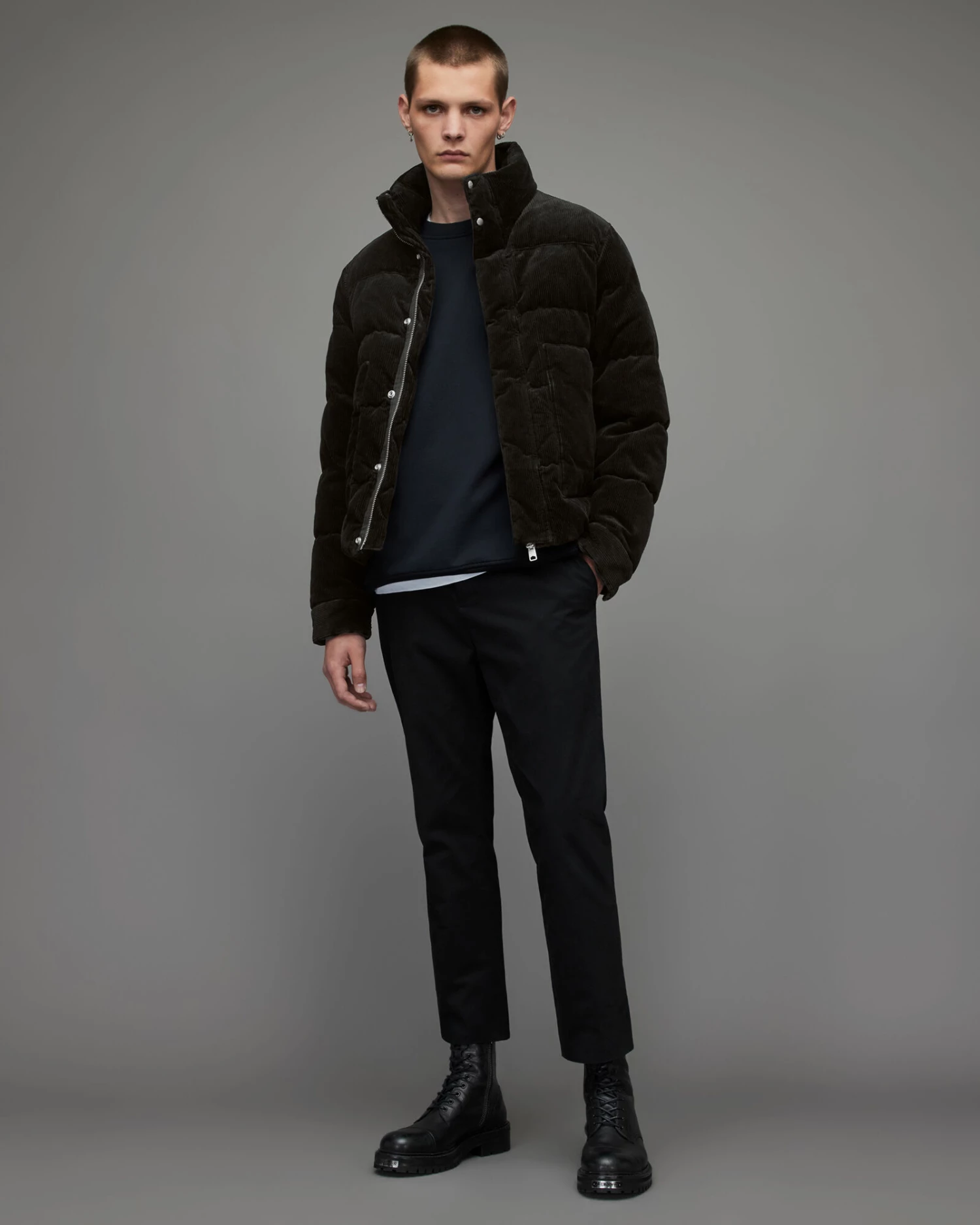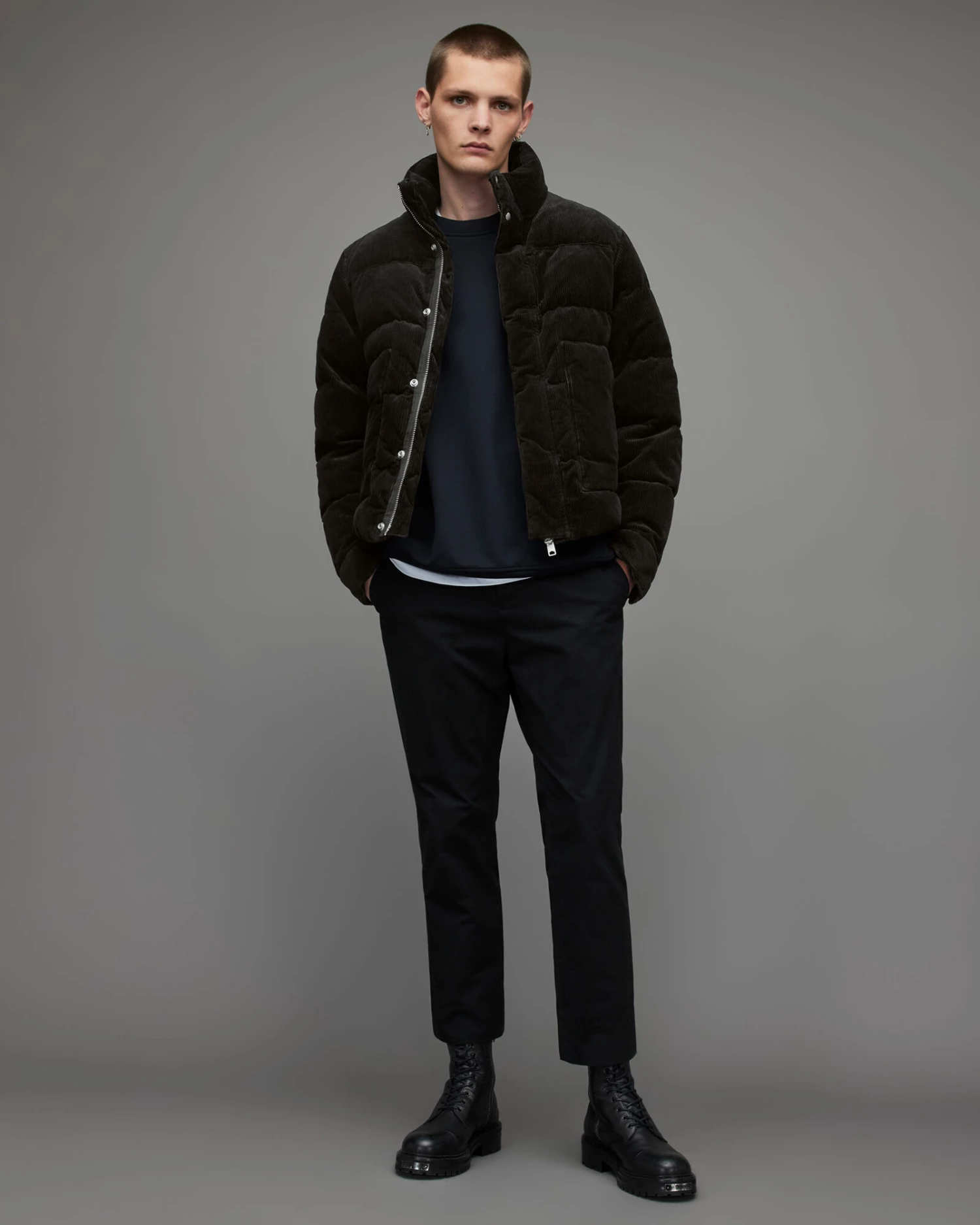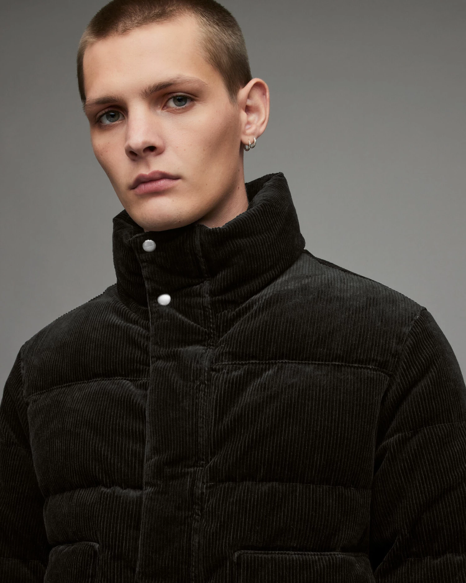 Corduroy is a favourite. The Hogan Jacket offers a new winter style. Lightly quilted with a funnel neck, it has a modern structure.