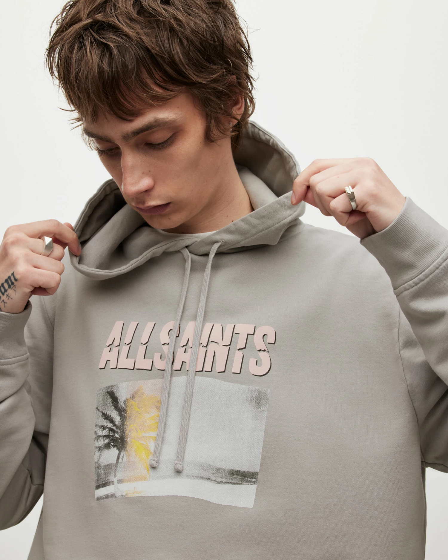 We’re chasing sunsets – the Huska Hoodie captures it. Cut from organic cotton, it’s regular fitting with our AllSaints signature across the chest.