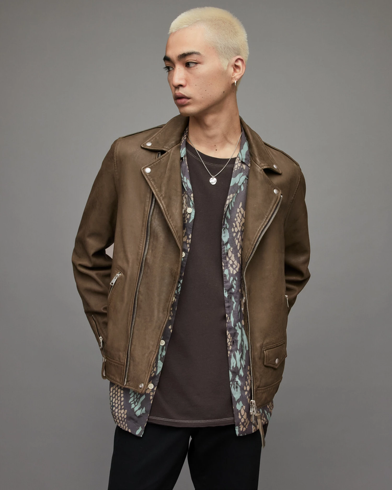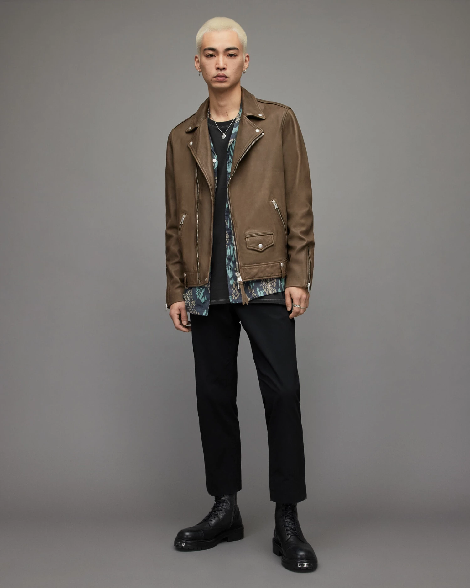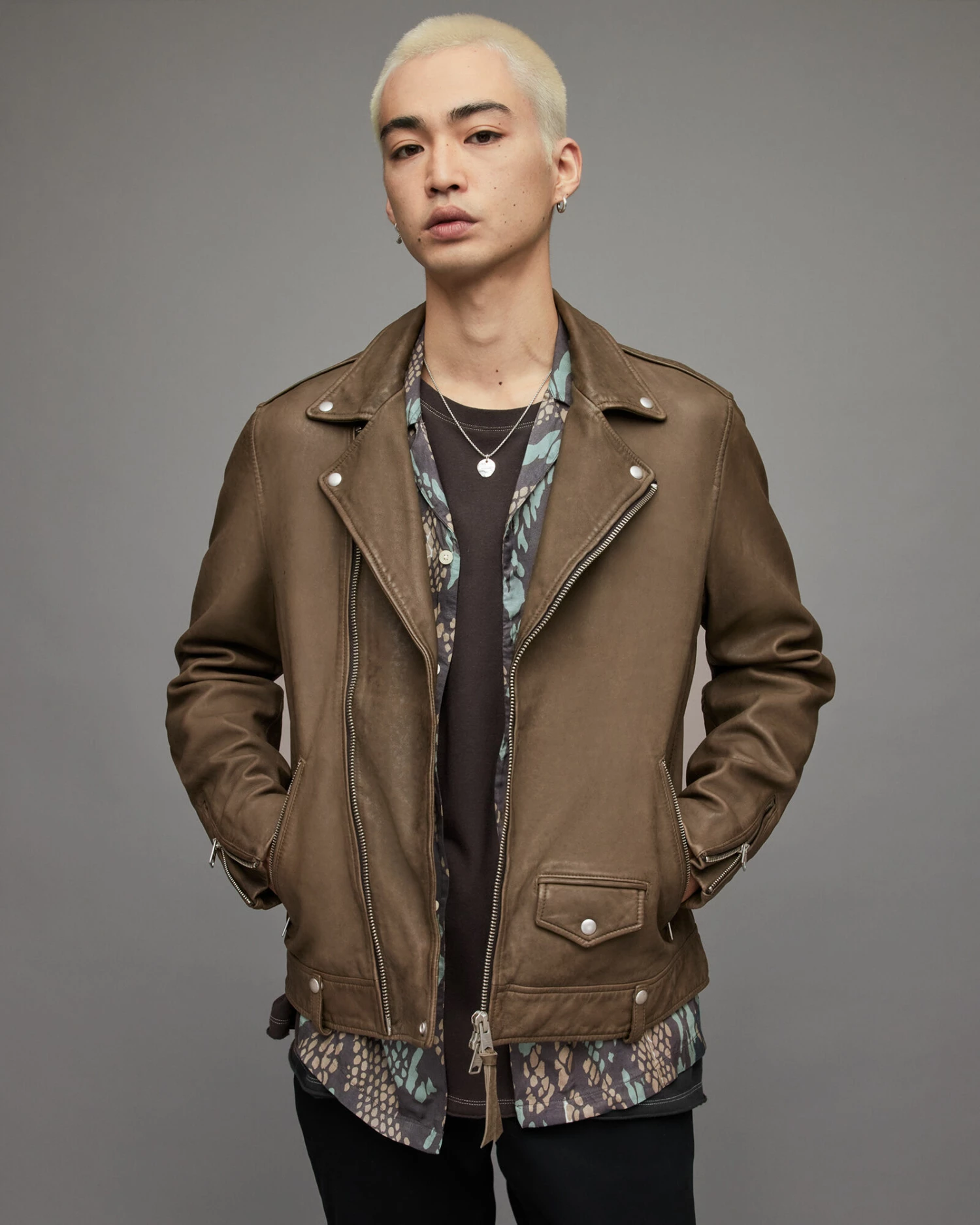 The Milo Biker. Made from soft lamb leather, with biker jacket details. It’s got a ticket pocket, hem loops and silver metal zips – just add the motorbike.