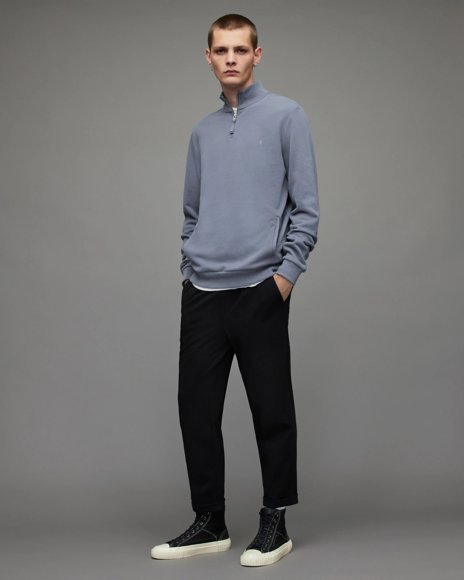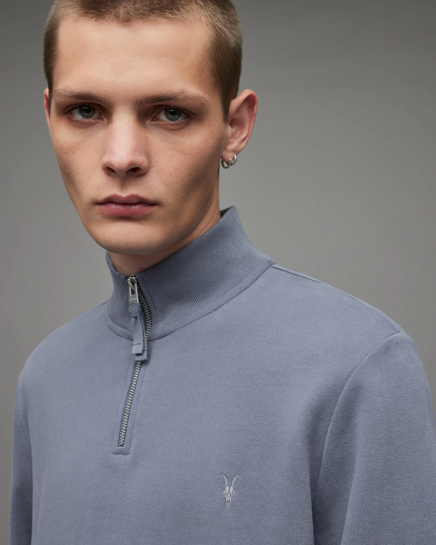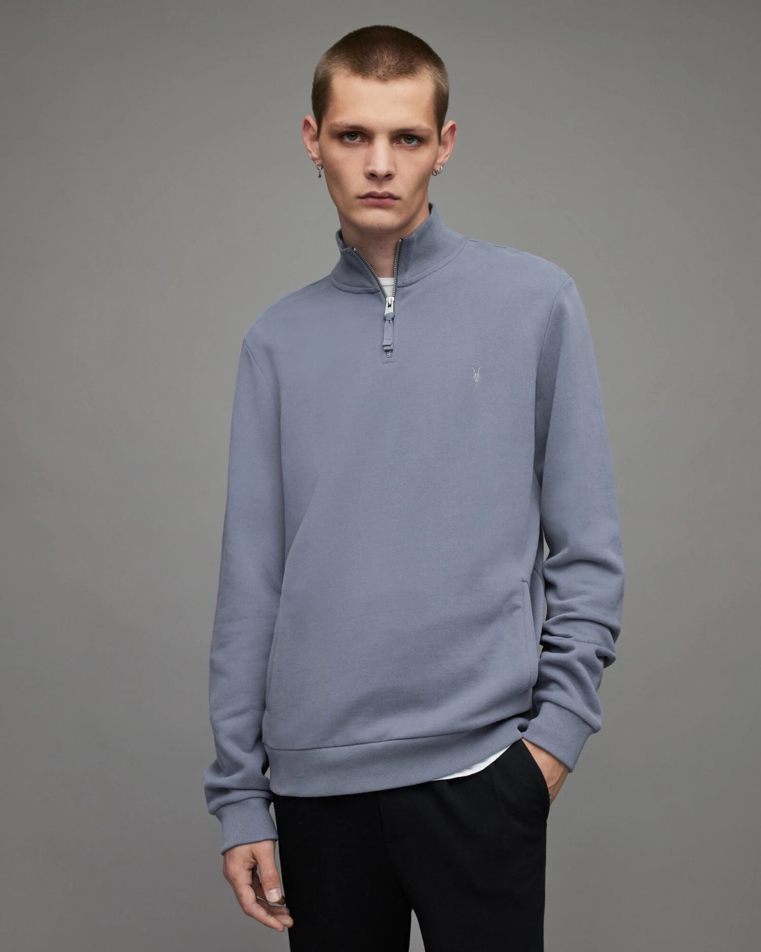 Relax with us. The Raven Half Zip Funnel Sweatshirt is a new addition for your off-duty capsule. Crafted from organic cotton for an extra soft finish and detailed with our Ramskull on the chest.