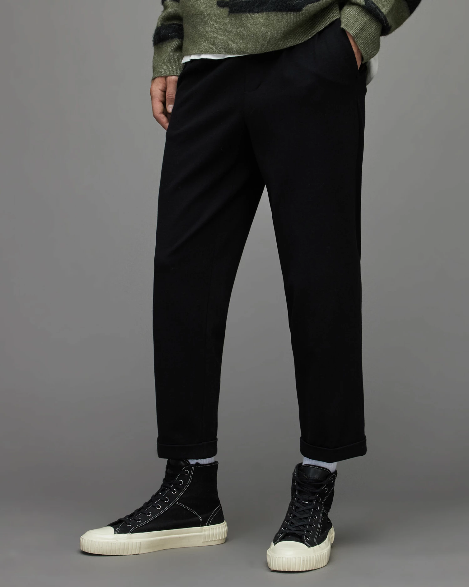 The lightweight option. These are the Rein Trousers. Crafted from sustainable stretch jersey material and cut to slim, cropped fit. Mid-rise and relaxed, they offer smart styling with comfort and ease.