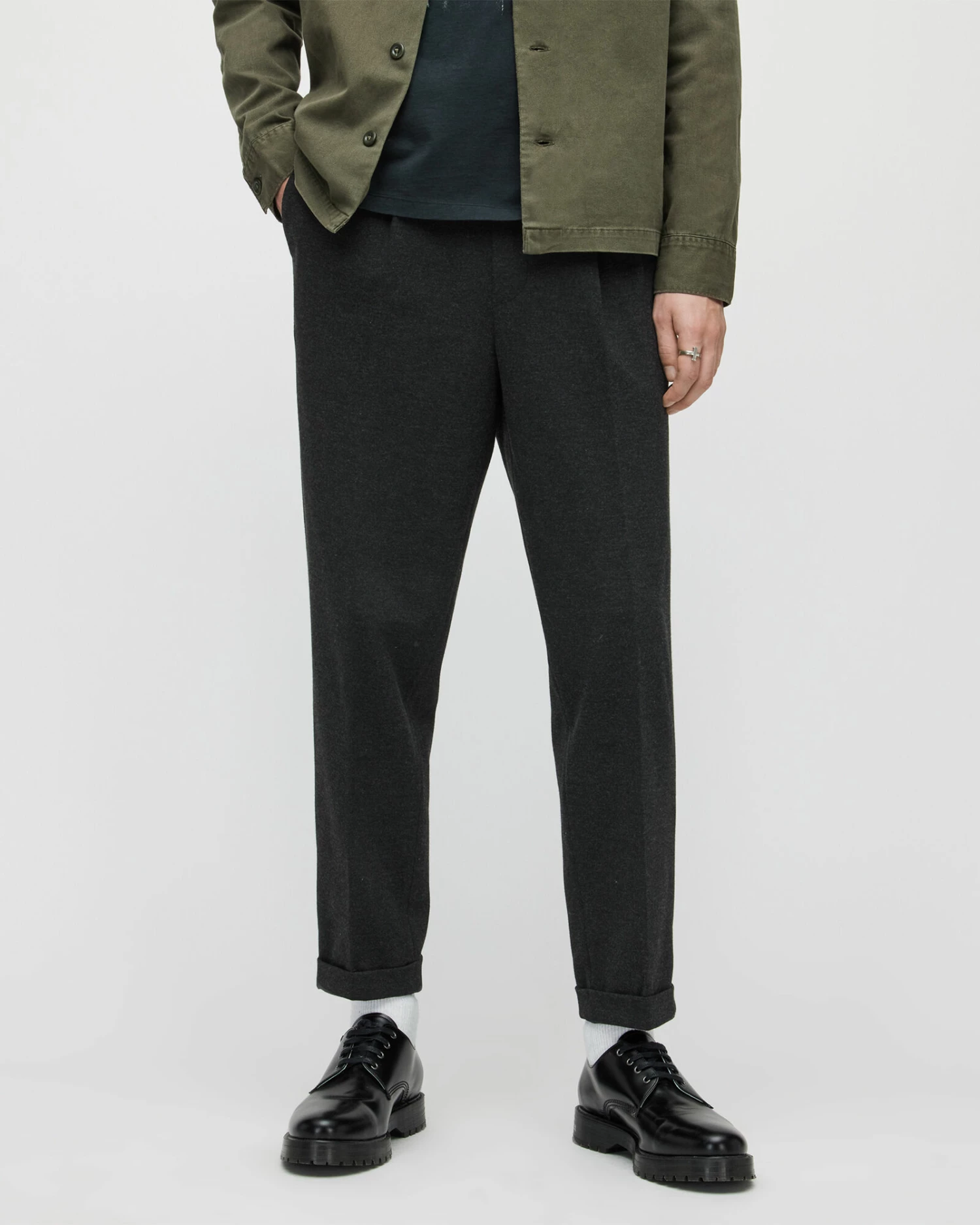 The lightweight option. These are the Rein Trousers. Crafted from sustainable stretch jersey material and cut to slim, cropped fit. Mid-rise and relaxed, they offer smart styling with comfort and ease.