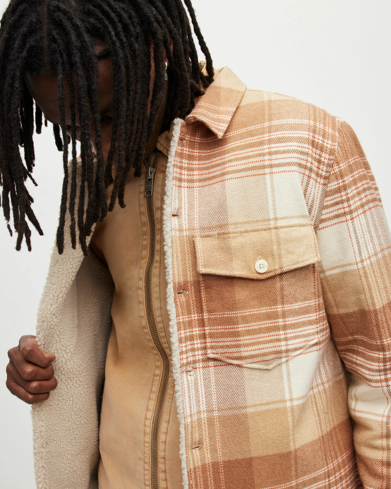 A warm top layer with ease – this is the Sacco Jacket. It’s relaxed with all-over checks and faux shearling lining. Our favourite overshirt fit, it’s completed with two chest pockets.
