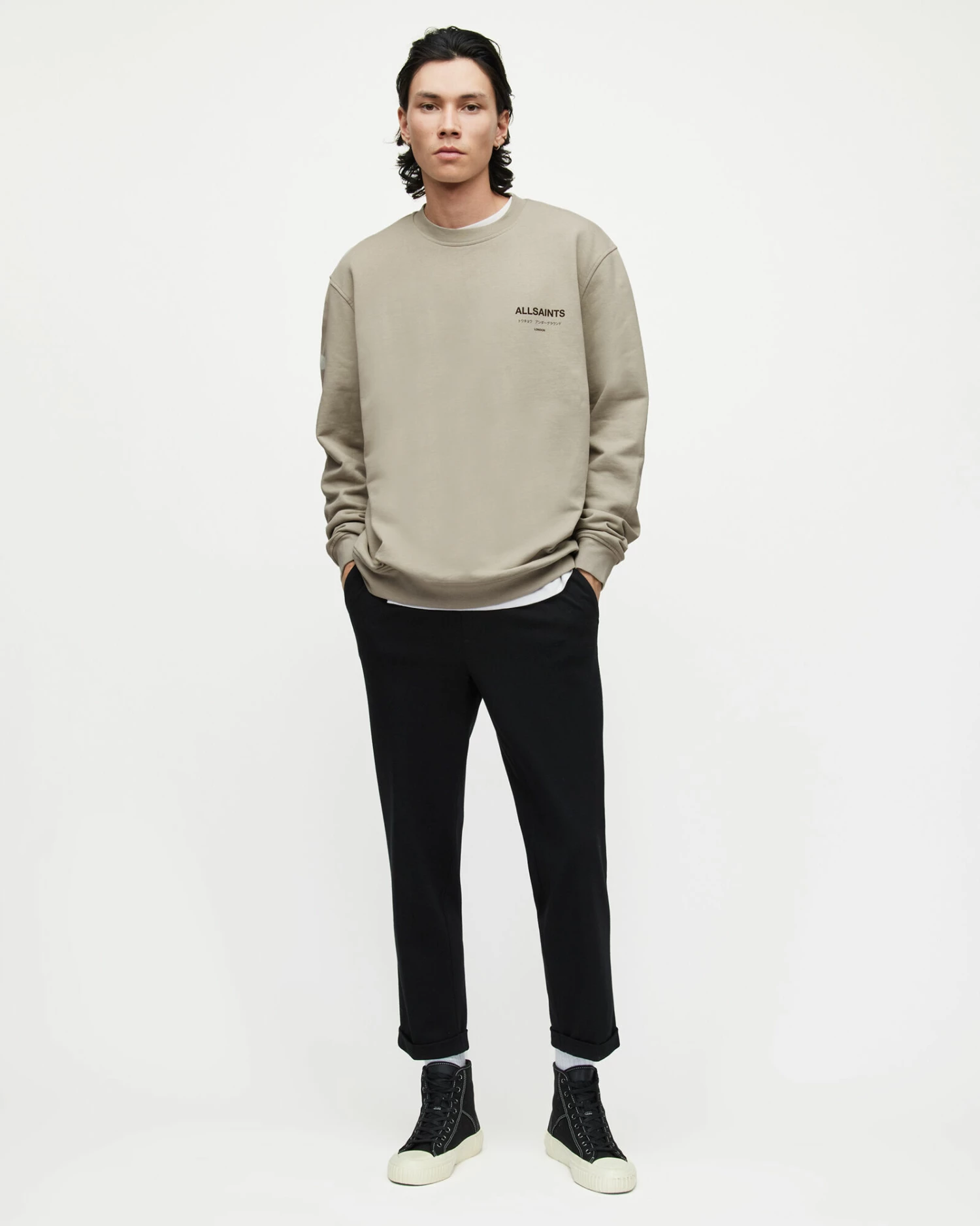 - AllSaints signature logo on the chest and centre back