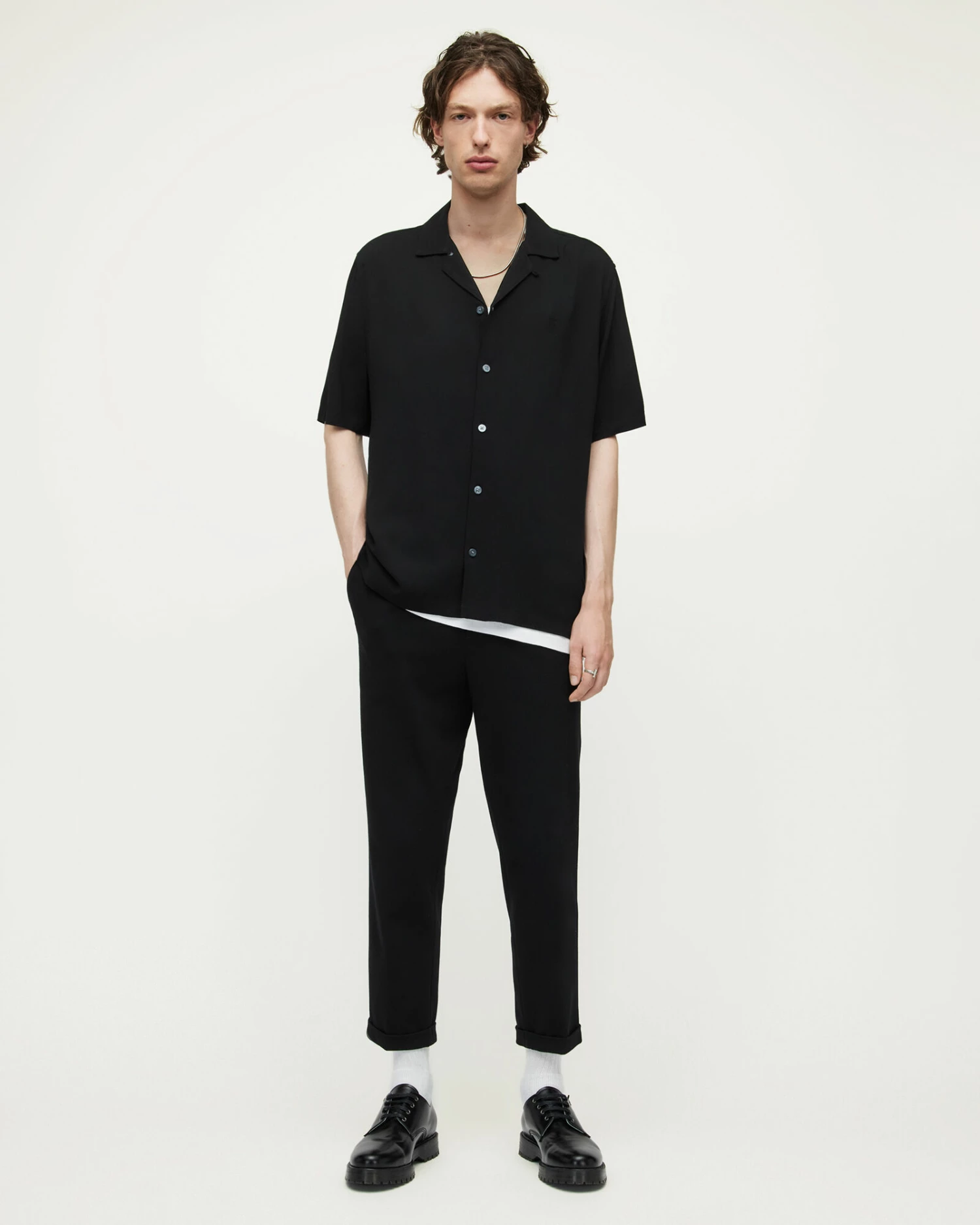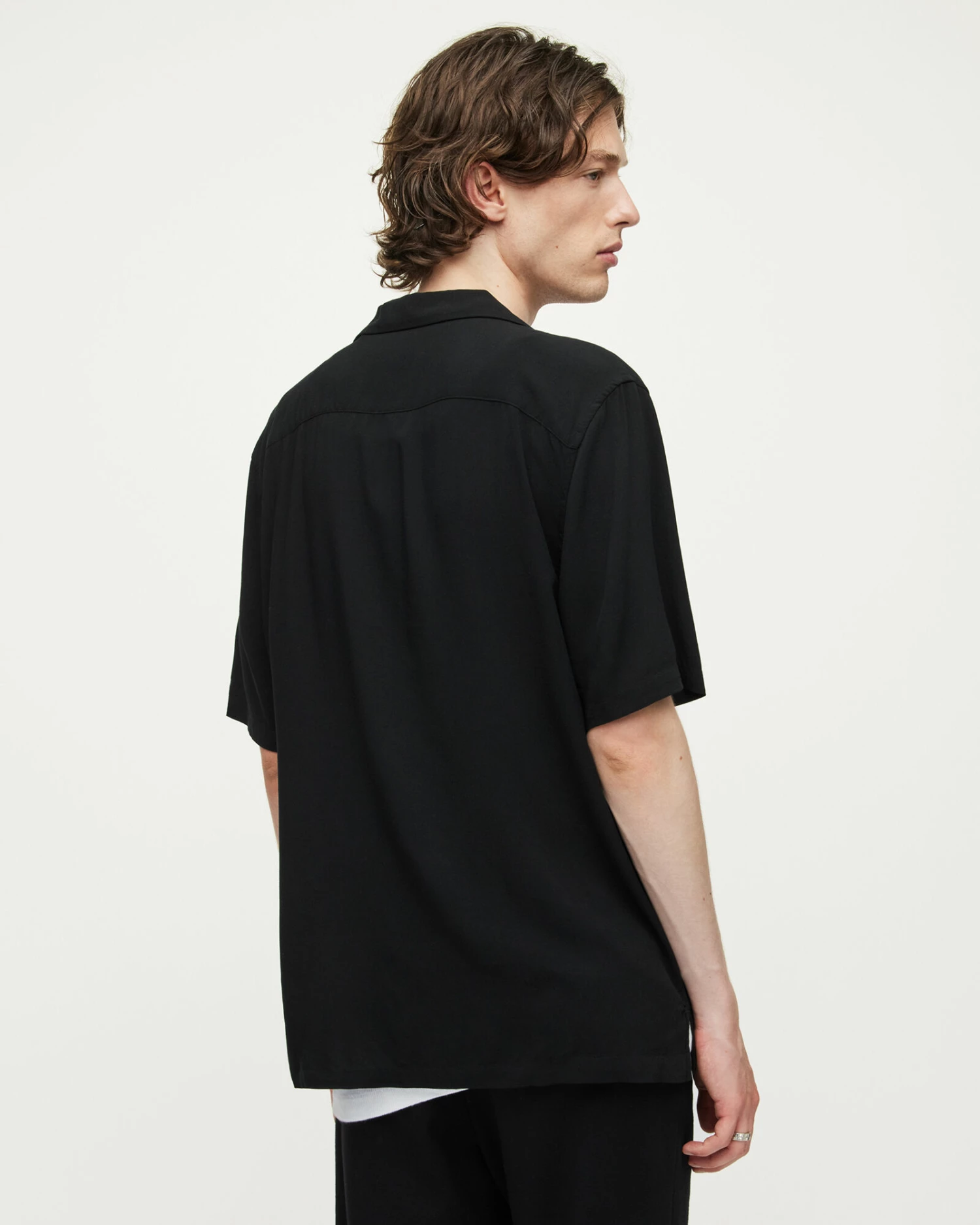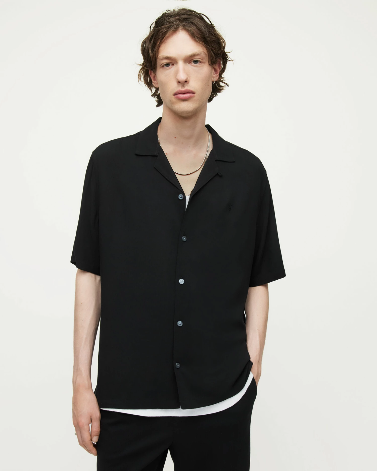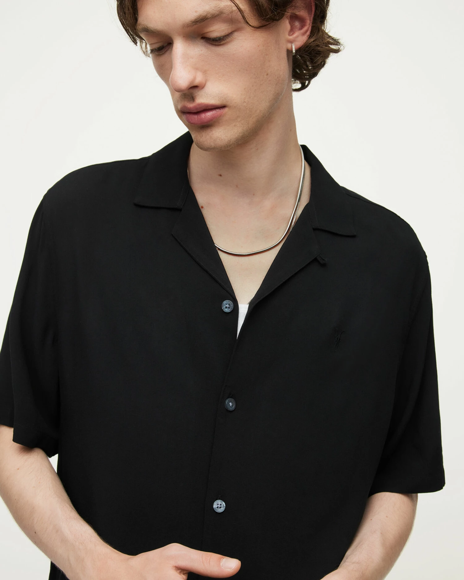 Look closely, our Ramskull is there, embroidered on the chest. This is the Venice Shirt. Short sleeves, camp collar, relaxed fit.