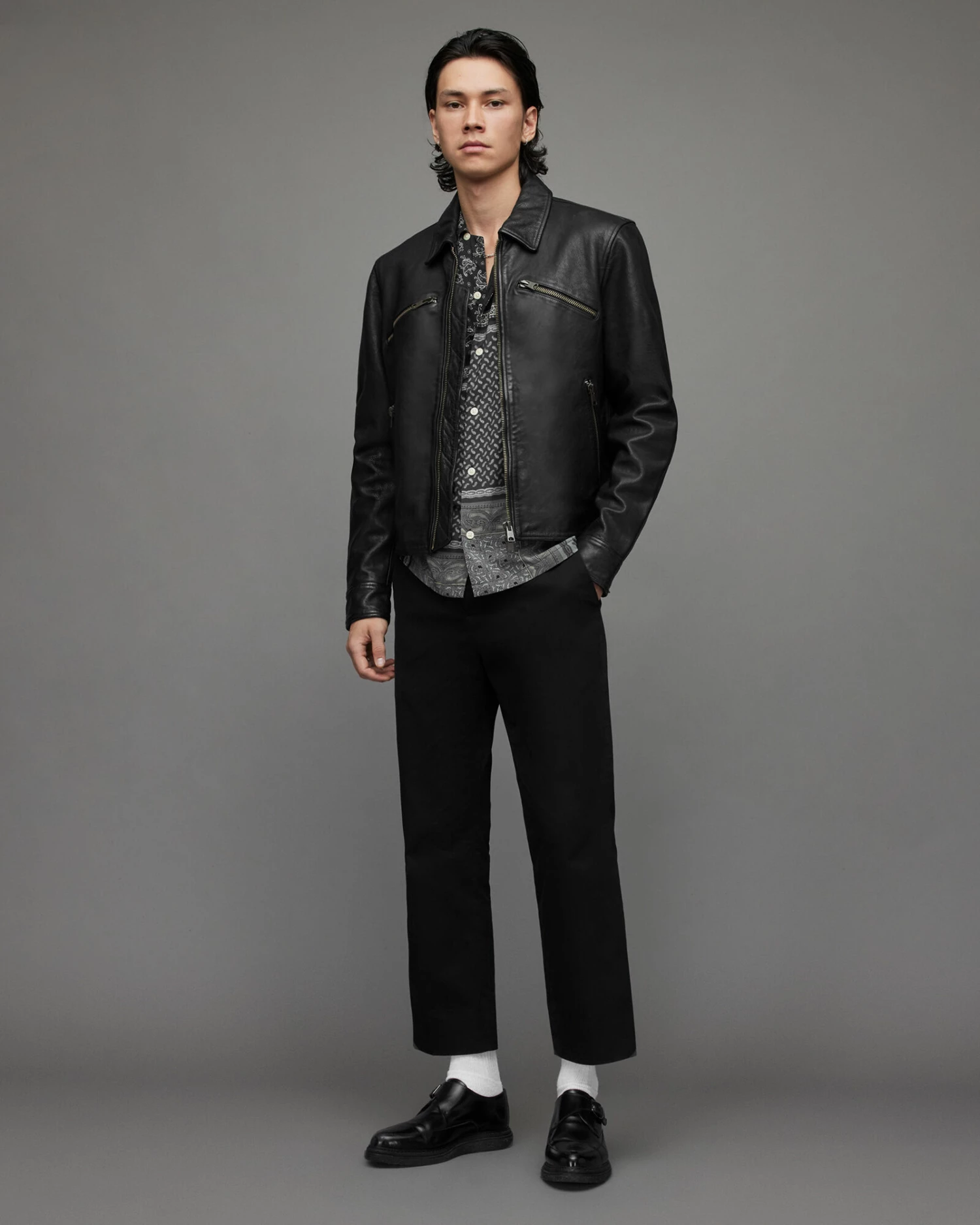 We’re into vintage styling. The Verdi Jacket. Crafted from leather and shaped to a cropped silhouette with a classic collar. The antique brass hardware provides that authentic feel.